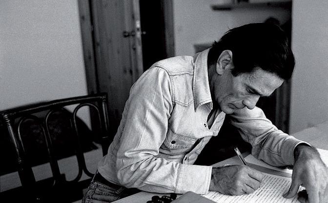 Pier Paolo Pasolini nel suo studio, a Sabaudia.